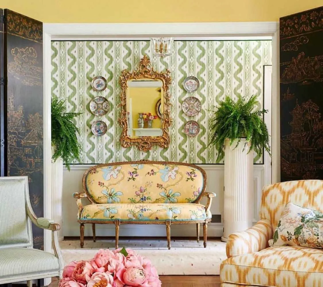 The general rule of thumb is to have a large scale organic print, a medium scale geometric and then a mini print. Obviously, this is not a guarantee to a successful scheme nor is it always used by designers. There are dozens of designers who do their own thing when it comes to pattern mixing and it turns out incredible. This project for instance by Mark Sikes, he uses three large scale patterns but they work well together and the result is stunning!